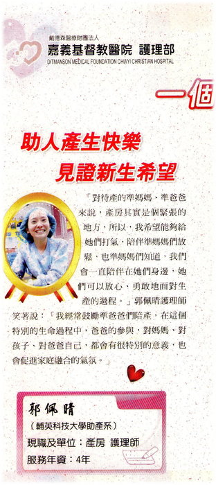 郭佩晴系友助人產生快樂,見證新生希望(嘉義基督教醫院)